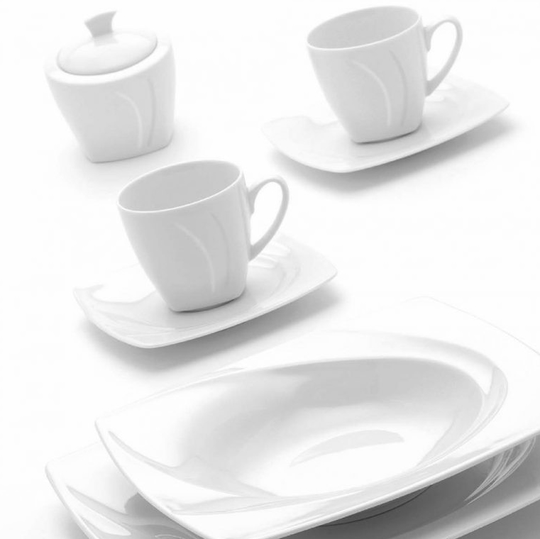 Celebration to nowoczesny fason z delikatnym reliefem przypominającym miękkie, opływowe łuki. Wygodne i ergonomiczne uszko pozwala z przyjemnością delektować się pitą kawą, a funkcjonalny kształt talerzy gwarantuje wygodę i możliwość praktycznego zastosowania na co dzień