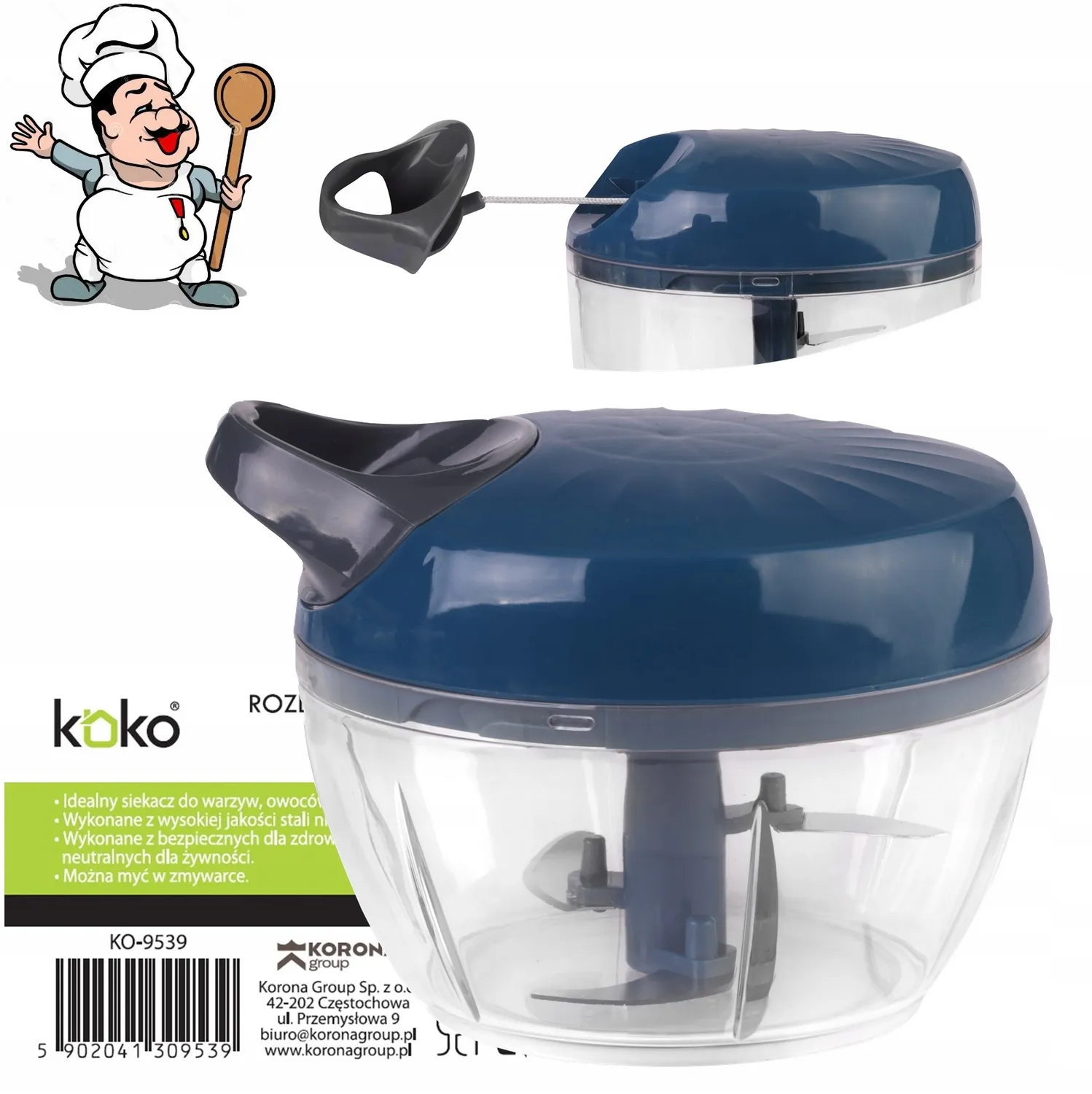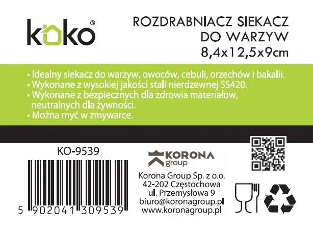 Rozdrabniacz siekacz szatkownica ręczny 9cm do warzyw cebuli sznurkowy KOKO