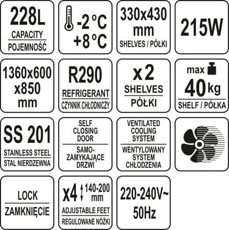 STÓŁ CHŁODNICZY 228L 2 DRZWIOWY YG-05253