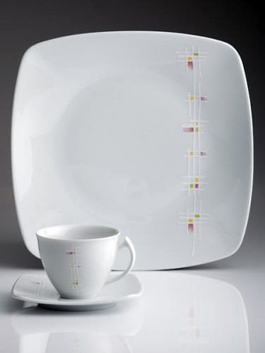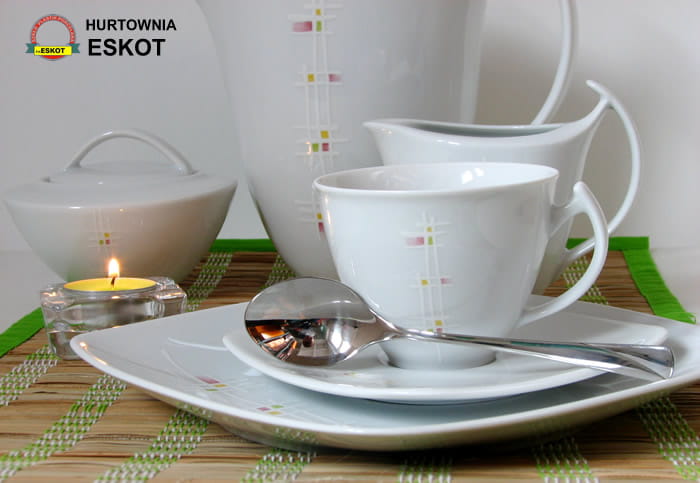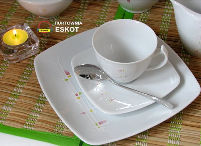 Akcent to dbałość w precyzowaniu detali. Zestawienie oryginalnych naczyń i kwadratowych talerzy to wynik chęci odzwierciedlenia proporcjonalnej formy w duchu nowoczesności. Połączenie delikatnych dekoracji i praktycznego kształtu powstało z myślą o tych, którzy wybierają oryginalne rozwiązania i cenią funkcjonalność.