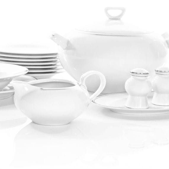 Serwis obiadowy dla 12 osób Yvonne Platynowa Wstęga – porcelana z platynowym akcentem.