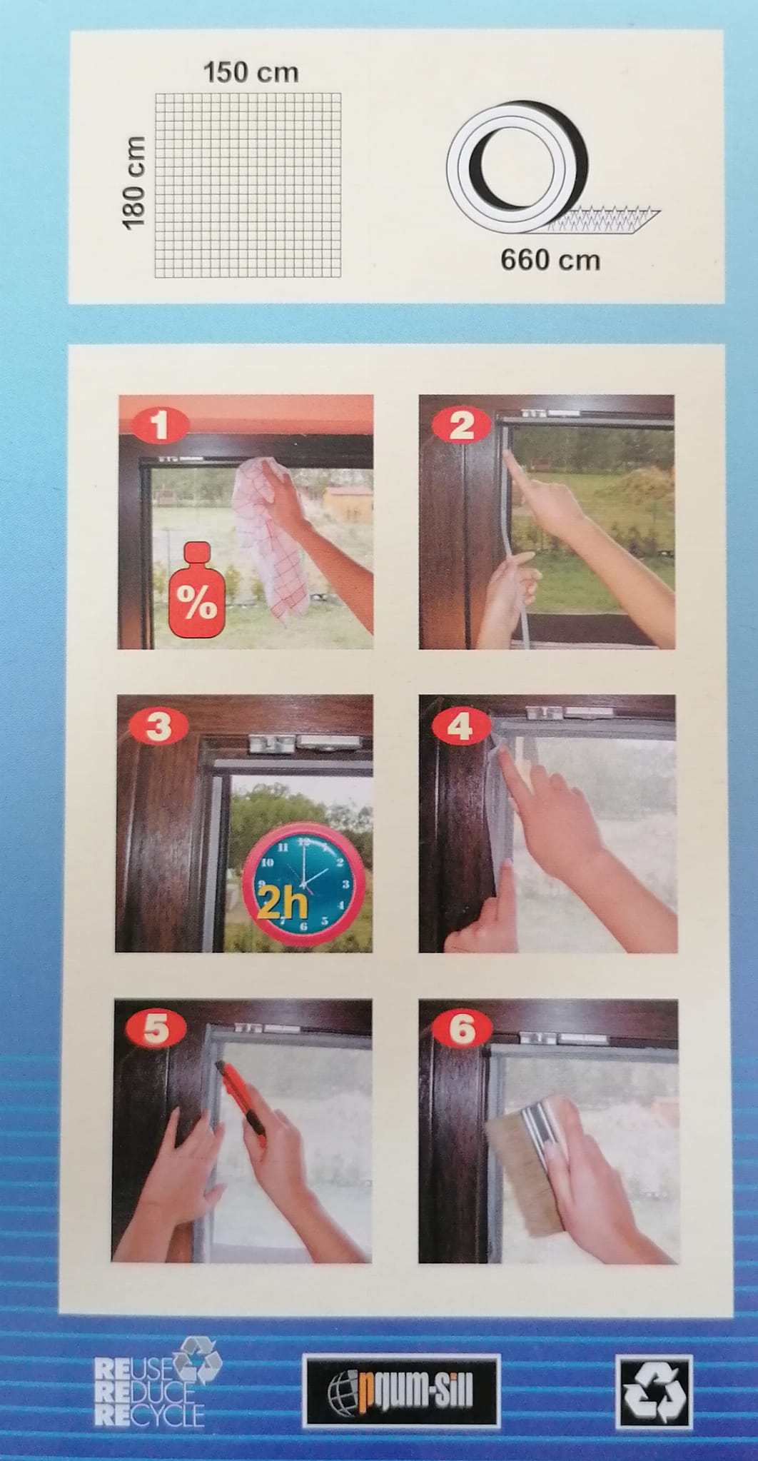 - Wymiar siatki można dociąć do swojego okna za pomocą nożyczek lub noża do tapet.