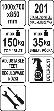 Stół przystawny skręcany z półką marki YATO o wymiarach 1000(sz)x700(gł)x850(wys).
