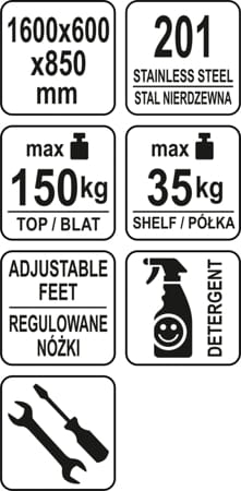 Stół przystawny skręcany z półką marki YATO o wymiarach 1600(sz)x600(gł)x850(wys).
