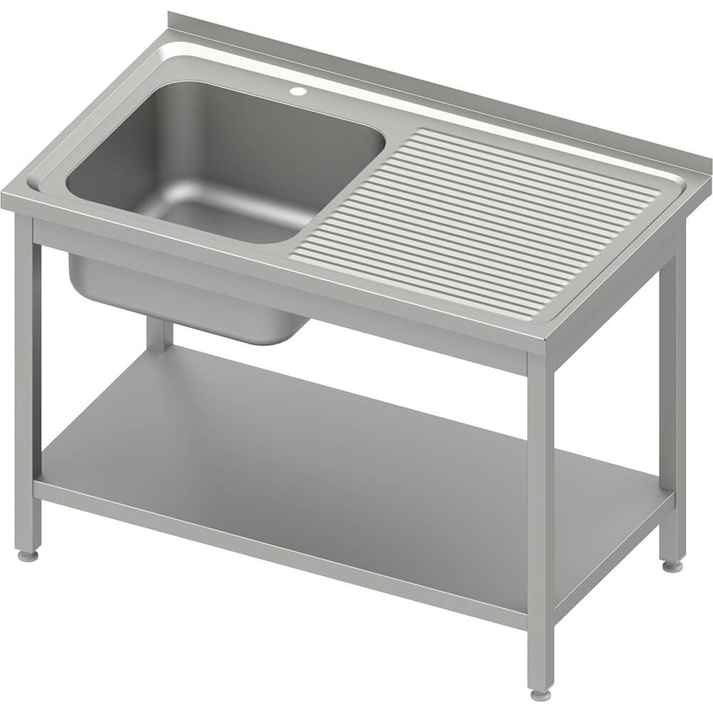 Stół stalowy z półką ze zlewem 1-komorowym lewym, spawany, blat tłoczony, 1000x600x850 mm 614126