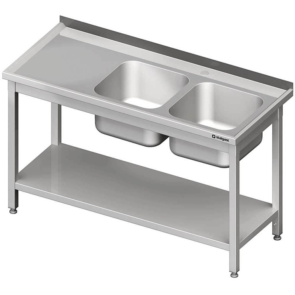 Stół stalowy z półką ze zlewem 2-komorowym prawym, skręcany, blat tłoczony, 1200x600x850 mm 613726