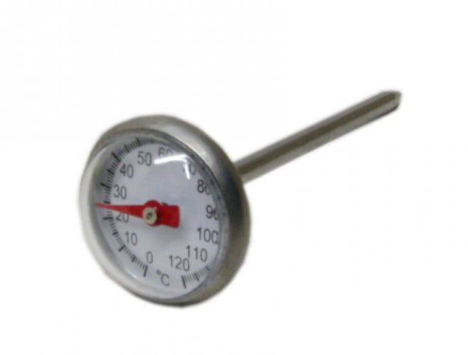 Z boku znajduje się gniazdo z otworem umożliwiającym bezpośredni pomiar temperatury wsadu mięsnego. Służy do tego termometr z sondą.