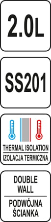 Podwójne ścianki, pomiędzy którymi jest strefa próżniowa, zapewniają doskonałe właściwości termoizolacyjne. Dzięki temu gorące napoje takie jak kawa czy herbata utrzymują wysoką temperaturę przez wiele godzin.