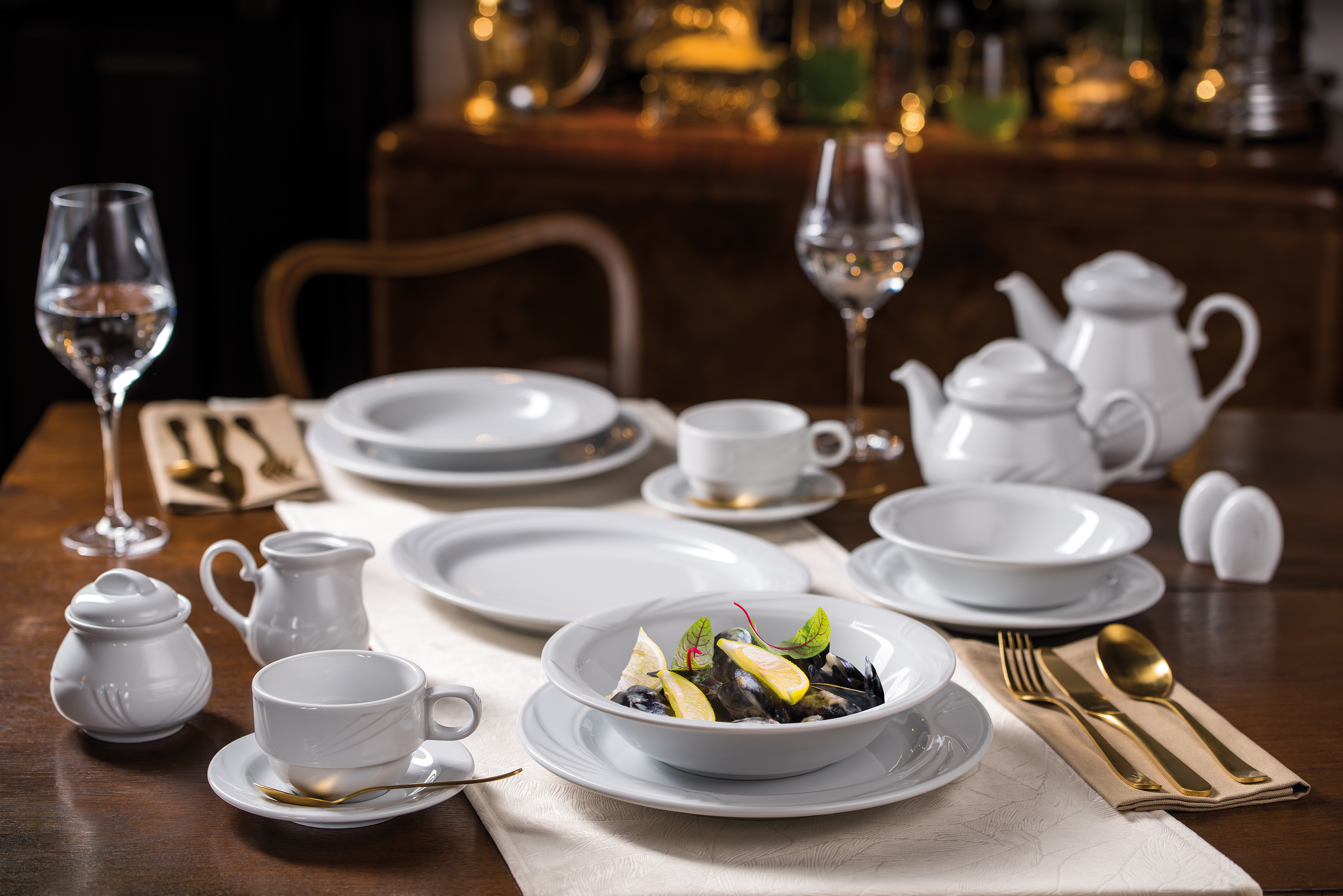 Arkadia to klasyczna kolekcja czerpiąca z klasycznych kanonów piękna. Subtelne reliefy sprawiają, że całość prezentuje się uniwersalnie i bardzo delikatnie. Porcelana z tej serii przenosi nas w idylliczny świat marzeń o doskonałej zastawie, którą od dzisiaj możemy mieć na swoim stole. Fason charakteryzują koliste, opływowe kształty oraz wyraźnie zaznaczone brzegi. Dyskretne tłoczenie znajdziemy na każdym elemencie linii, m. in. na talerzach, bulionówkach, imbryku czy cukiernicy, a nawet solniczce.