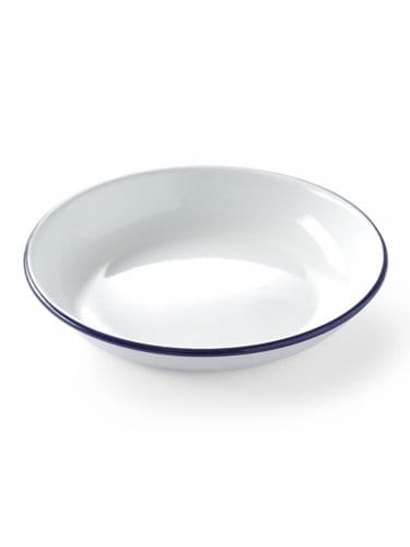 – Stal pokryta białą emalią z delikatnym niebieskim brzegiem