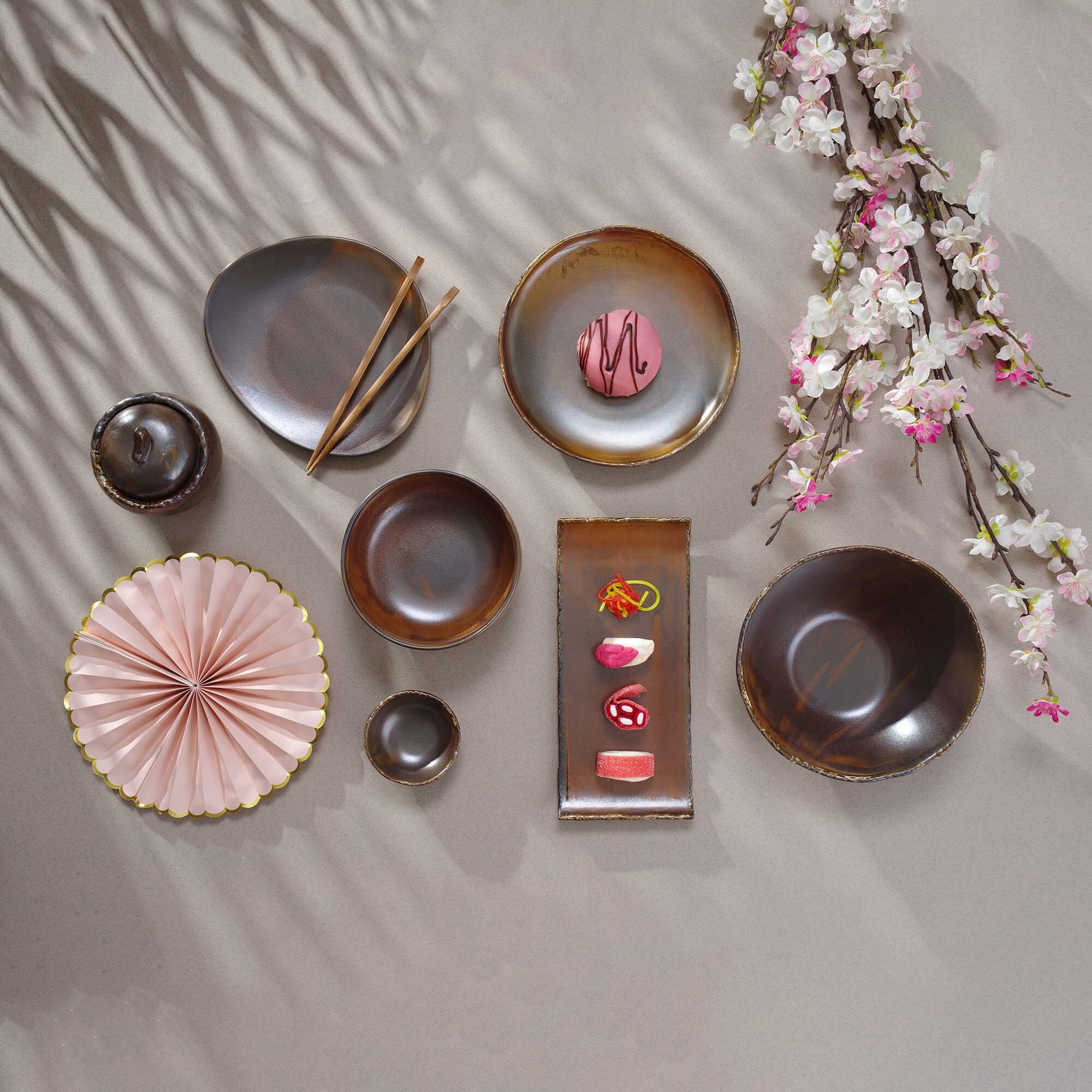 Kolekcja AURUM z linii Kolory Ziemi to porcelana o ciepłej, szlachetnej tonacji i organicznym wykończeniu, które pięknie podkreśla autorską kuchnię i domowe celebracje.