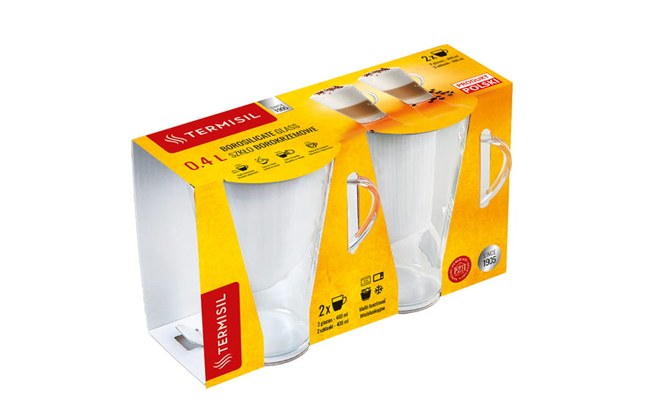 Komplet 2 szklanek żaroodpornych ze szkła boro-krzemowego Termisil.