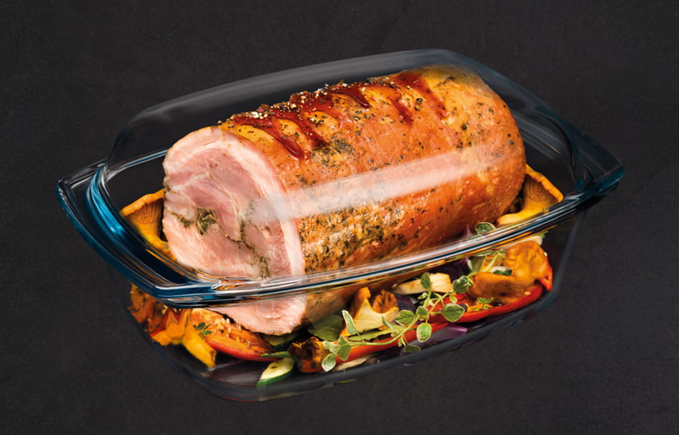 Naczynie żaroodporne z pokrywą wykonane ze szkła boro-krzemowego jest odporne na temp. -40*C do +300*C.