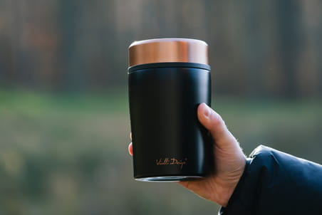Termos obiadowy Vialli Design z serii Fuori ma pojemność 500 ml i posiada stalową izolację próżniową – gwarantuje to zachowanie odpowiedniej temperatury przez długi czas. W przypadku gorących produktów będzie to 12 godzin, a w przypadku schłodzonych – aż 16 godzin. Bardzo dużym atutem jest to, że zewnętrzna ścianka nie nagrzewa się ani nie skrapla. Dobrze przemyślany kształt produktu, który idealnie dopasuje się do każdej dłoni, to kolejny aspekt świadczący o niezwykłej funkcjonalności. Kompaktowy rozmiar i niewielka waga sprawiają, że transport termosu nie będzie żadnym problemem – możemy z łatwością zabrać go na przykład do pracy.