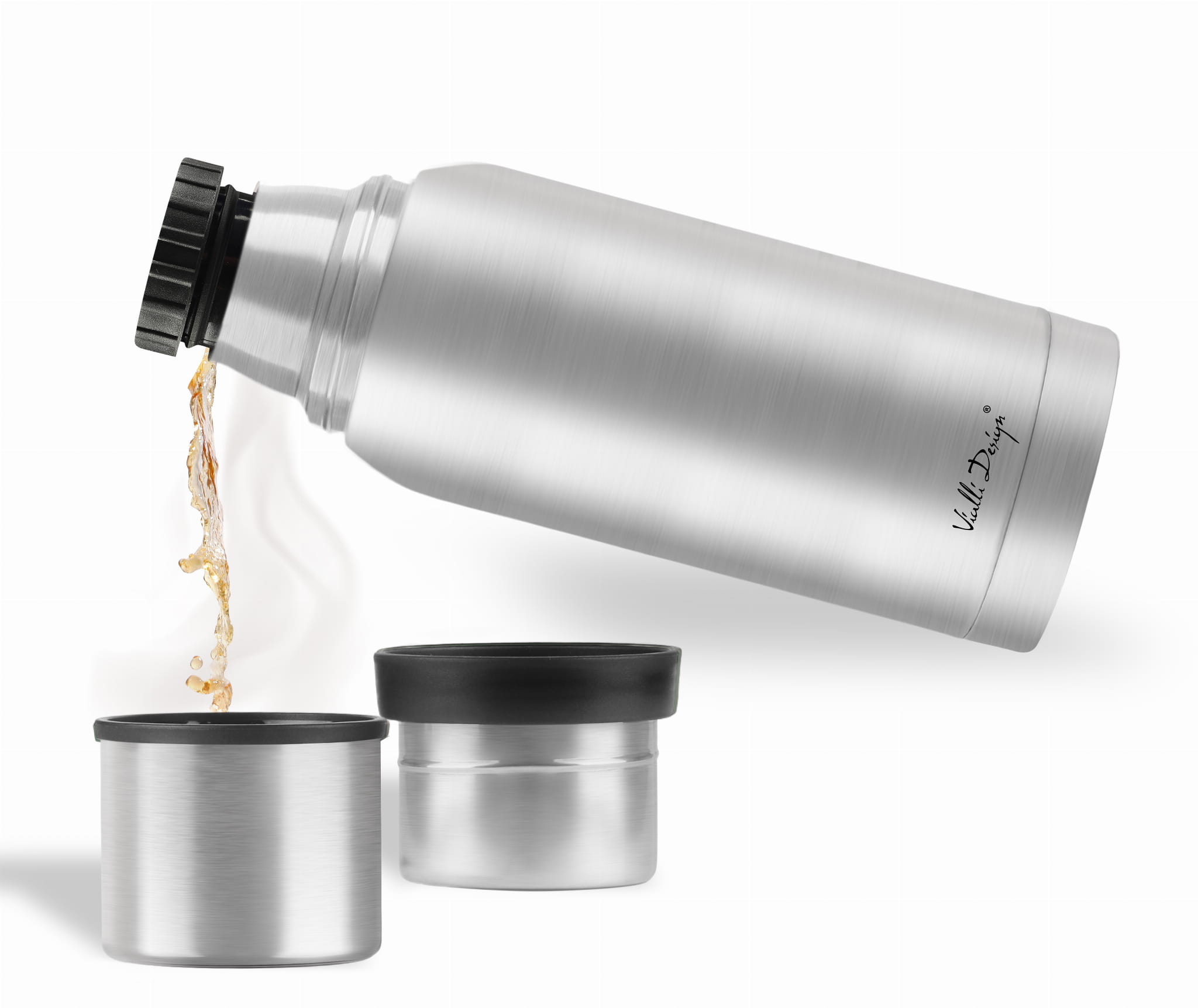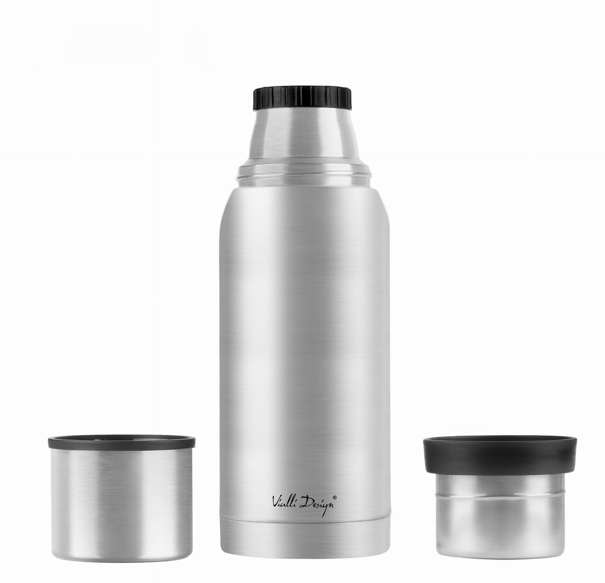 Termos turystyczny Fuori dostępny jest w pięciu wariantach kolorystycznych. Możemy wybierać pomiędzy białym, różowym, granatowym, zielonym i grafitowym. Produkt wyróżnia się nowoczesnym designem, wygodnym kształtem oraz stuprocentową szczelnością – takie połączenie to gwarancja zadowolenia każdego klienta. Termos firmy Vialli Design został dodatkowo zaopatrzony w dwa kubki o pojemności 150 ml i 200 ml.