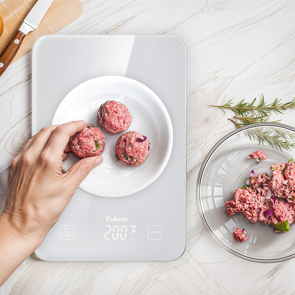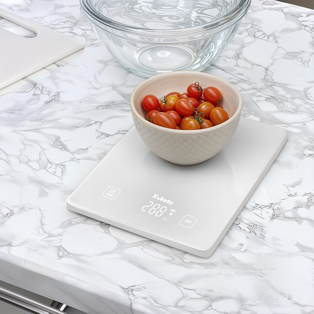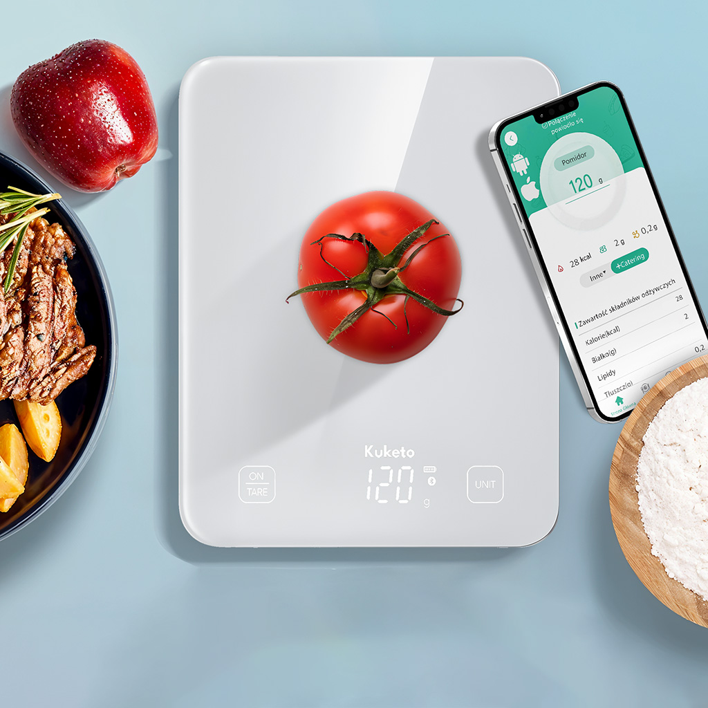 Biała Kuketo Smart Scale to nie tylko praktyczne urządzenie, ale także stylowy element wyposażenia kuchni.