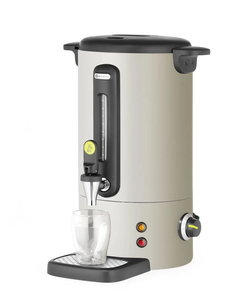 Ten warnik ze stali nierdzewnej cechuje się niekapiącym kranem, szklanym wskaźnikiem poziomu wody, tacką ociekową mocowaną za pomocą magnesu, a także automatycznym trybem podtrzymywania ciepła.