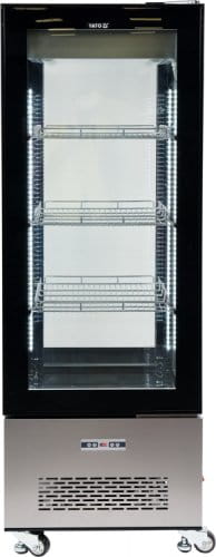 Witryna chłodnicza YATO wolnostojąca o pojemności 400L w kolorze czarnym o wymiarze 650x650x1908mm.