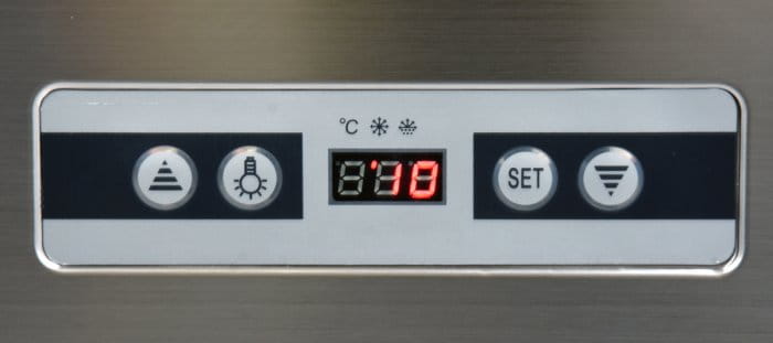 Sterowanie witryną odbywa się za pomocą sterownika elektronicznego z wyświetlaczem temperatury. Dodatkowo zainstalowany jest wyłącznik zasilania umożliwiający uruchomienie lub wyłączenie witryny w każdym momencie bez konieczności odłączania jej od zasilania.