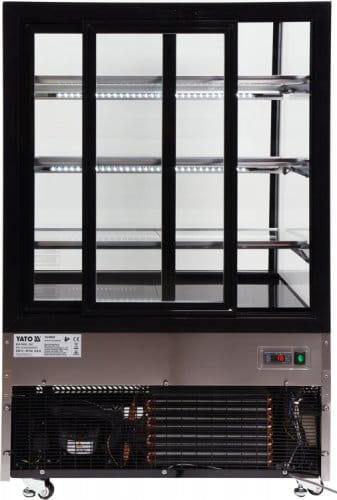 Witryna chłodnicza marki YATO przeznaczona jest do ekspozycji ciast, tortów, koktajli, jogurtów czy różnego rodzaju napojów orzeźwiających, a także sałatek czy drobnych przekąsek. Nowoczesne wzornictwo połączone z wysoką jakością surowców powoduję, że witryna chłodnicza YATO doskonale prezentuje się na froncie we wszelkiego typu cukierniach, kawiarniach, restauracjach czy punktach handlowych.