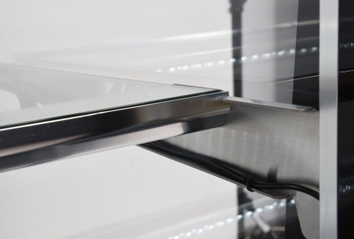 Witryna chłodnicza YATO ma pojemność 400L i posiada trzy półki szklane o regulowanej wysokości mocowania. Dostęp do nich odbywa się za pośrednictwem otwieranych drzwiczek szklanych. Wykonane są one z dwuwarstwowych szyb hartowanych, podobnie jak szyba frontowa i boczne. Zapewnia to dużą wytrzymałość, a jednocześnie bardzo dobre właściwości izolujące.