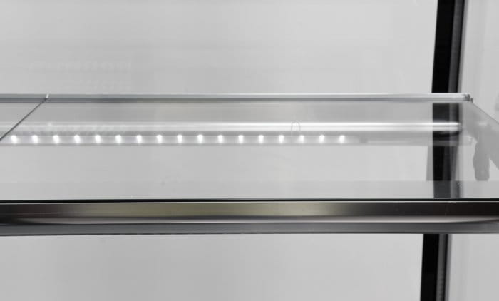 Dodatkowo zainstalowane oświetlenie LED pod spodem każdej z półek eksponuje prezentowane potrawy w bardzo atrakcyjny sposób zachęcając klientów do ich wyboru.