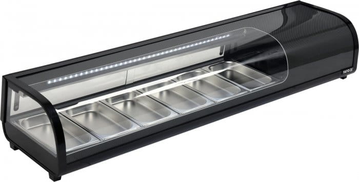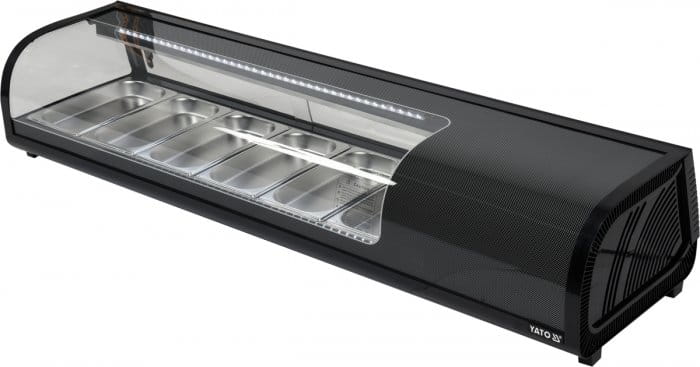 Witryna chłodnicza marki YATO przeznaczona jest do ekspozycji sushi, tapas czy różnego rodzaju starterów. Nowoczesne wzornictwo połączone z wysoką jakością surowców powoduję, że witryna chłodnicza YATO doskonale prezentuje się na froncie we wszelkiego typu restauracjach czy hotelach.