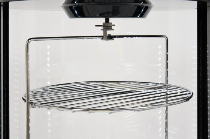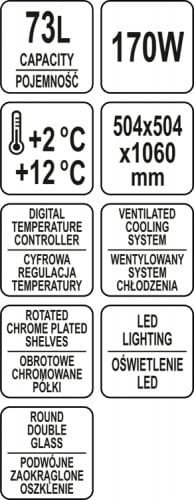 Nadstawka chłodnicza YATO ma pojemność 73L i posiada cztery chromowane obrotowe półki. Dostęp do nich odbywa się za pośrednictwem otwieranych drzwiczek szklanych. Wykonane są one z podwójnego szkła hartowanego, podobnie jak zaokrąglona szyba przednia. Zapewnia to dużą wytrzymałość, a jednocześnie bardzo dobre właściwości izolujące.