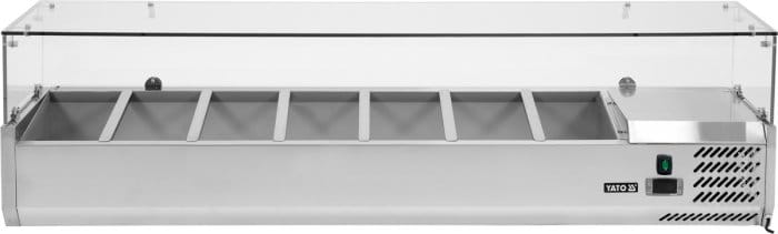 Witryna chłodnicza YATO o wymiarach 1600x395x435mm mieści 7 pojemników GN 1/3 o max głębokości 150mm.