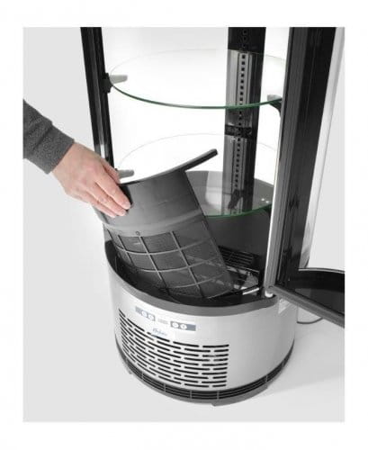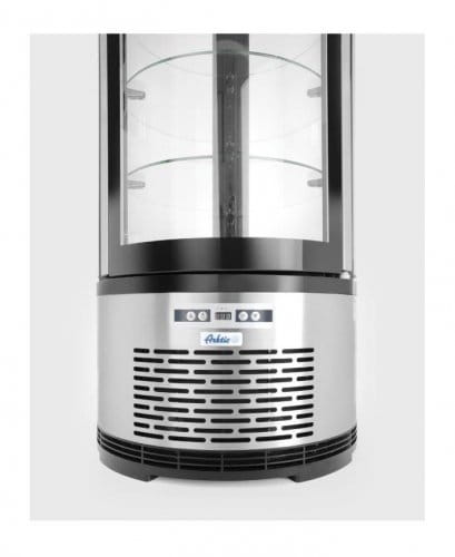 Witryna chłodnicza o mocy 210 W doskonale służy do przechowywania produktów w odpowiedniej temperaturze, ale też do ich eksponowania. Okrągła witryna chłodnicza Hendi o pojemności 100 l może stanowić element wyposażenia restauracji, barów, bufetów, cukierni, kawiarni itd., a jej stylowa obudowa zwraca uwagę klientów.
