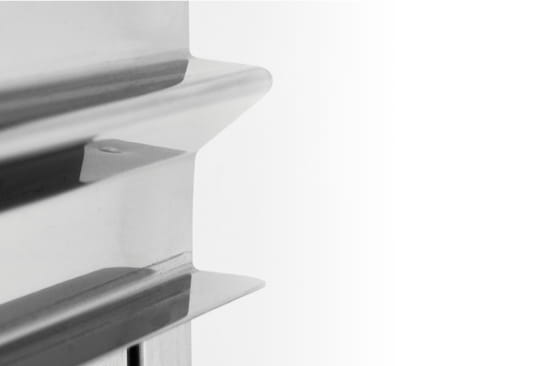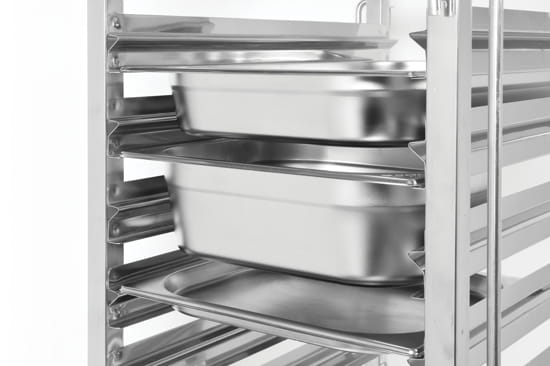 Rozmieszczone co 80 mm prowadnice o specjalnej konstrukcji w kształcie litery M, gwarantują stabilne utrzymanie pojemników GN. Profil tego typu daje możliwość dodatkowego dostosowania odległości pomiędzy poszczególnymi poziomami o 20 mm.