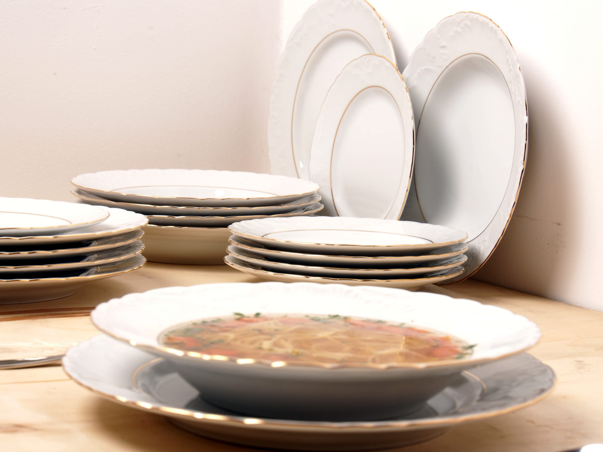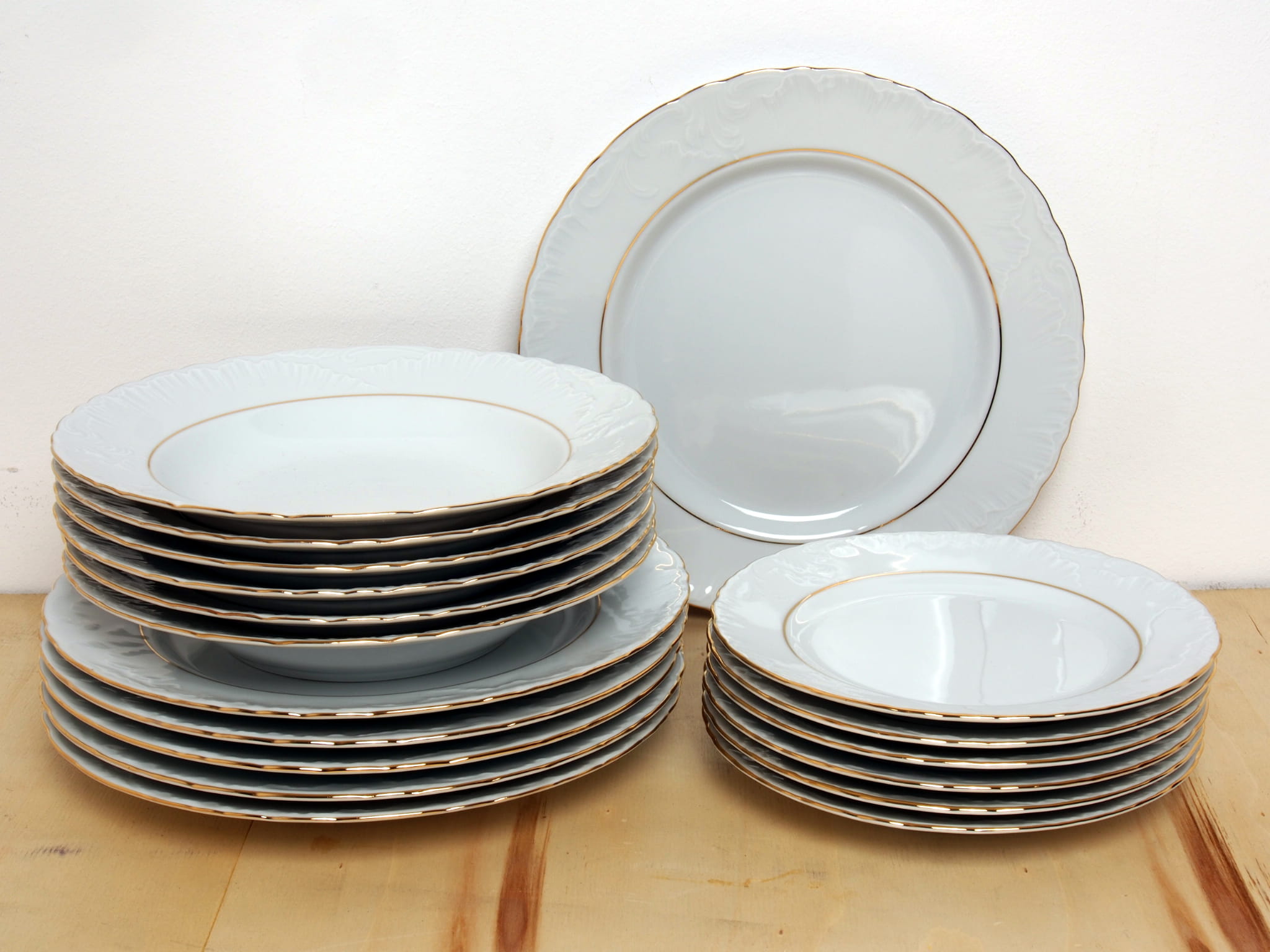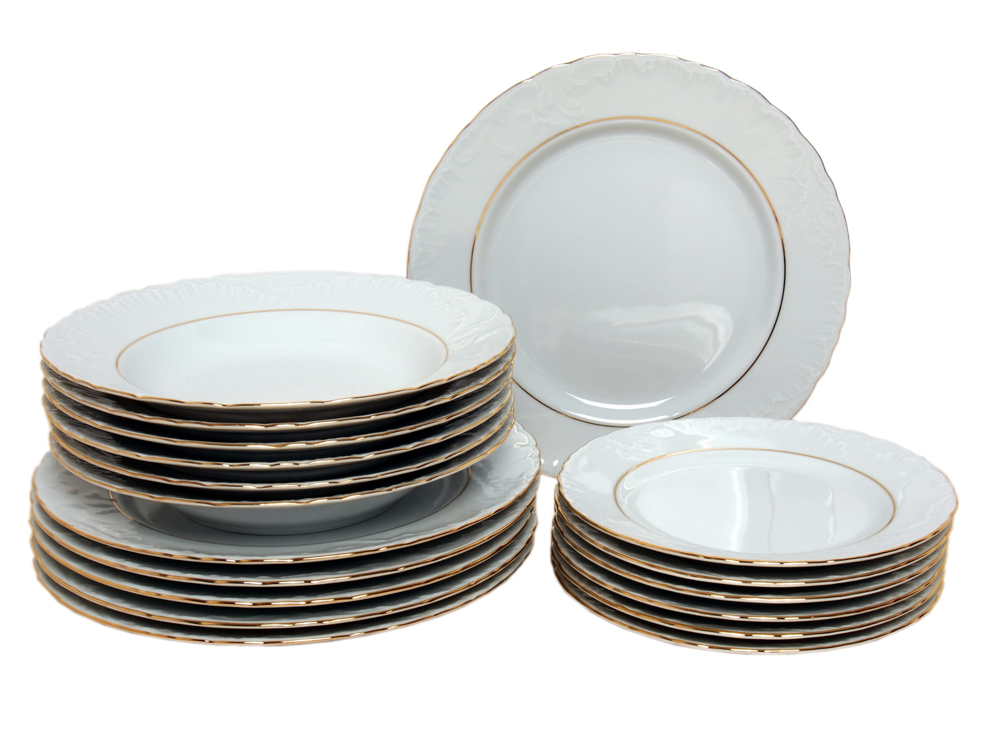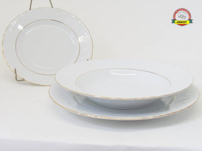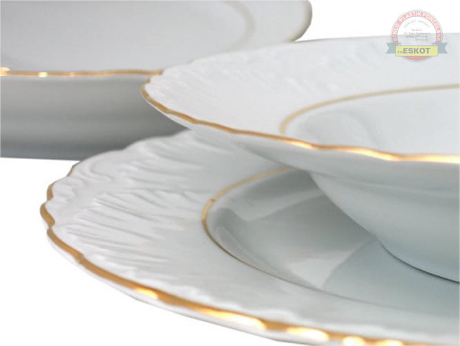 Zestaw 18 talerzy Cmielow Rococo 3604 zloty pasek