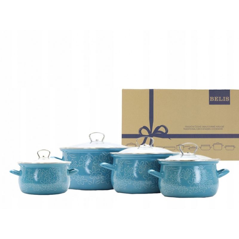 Zestaw garnków BELIS FLOWER – 4 garnki emaliowane z pokrywkami