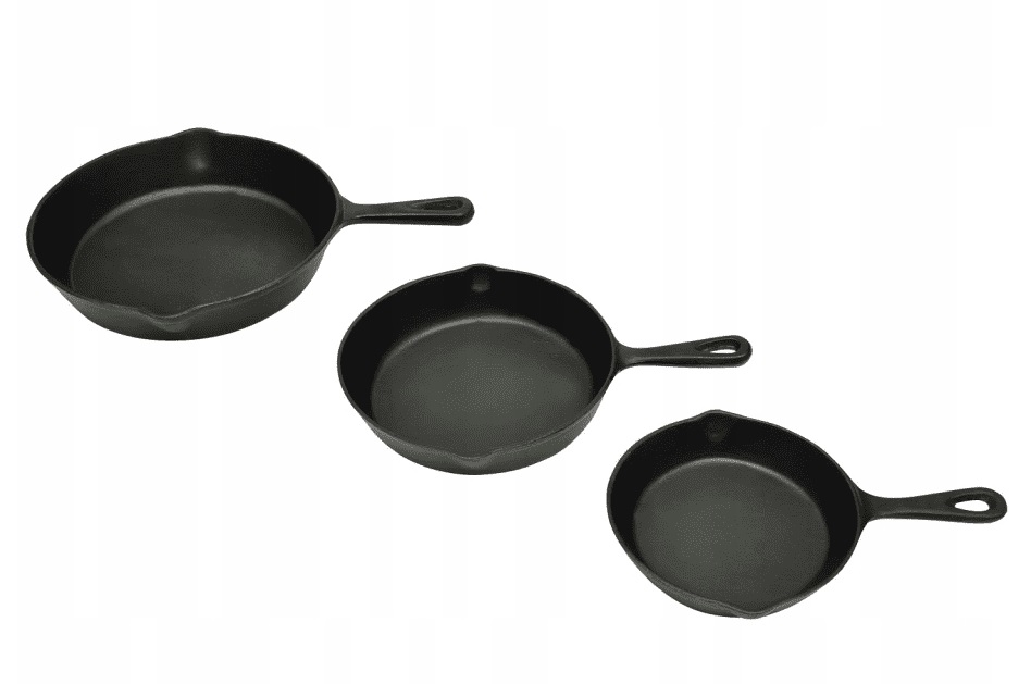 CIĘŻKIE MASYWNE PATELNIE ŻELIWNE ZESTAW 3SZT