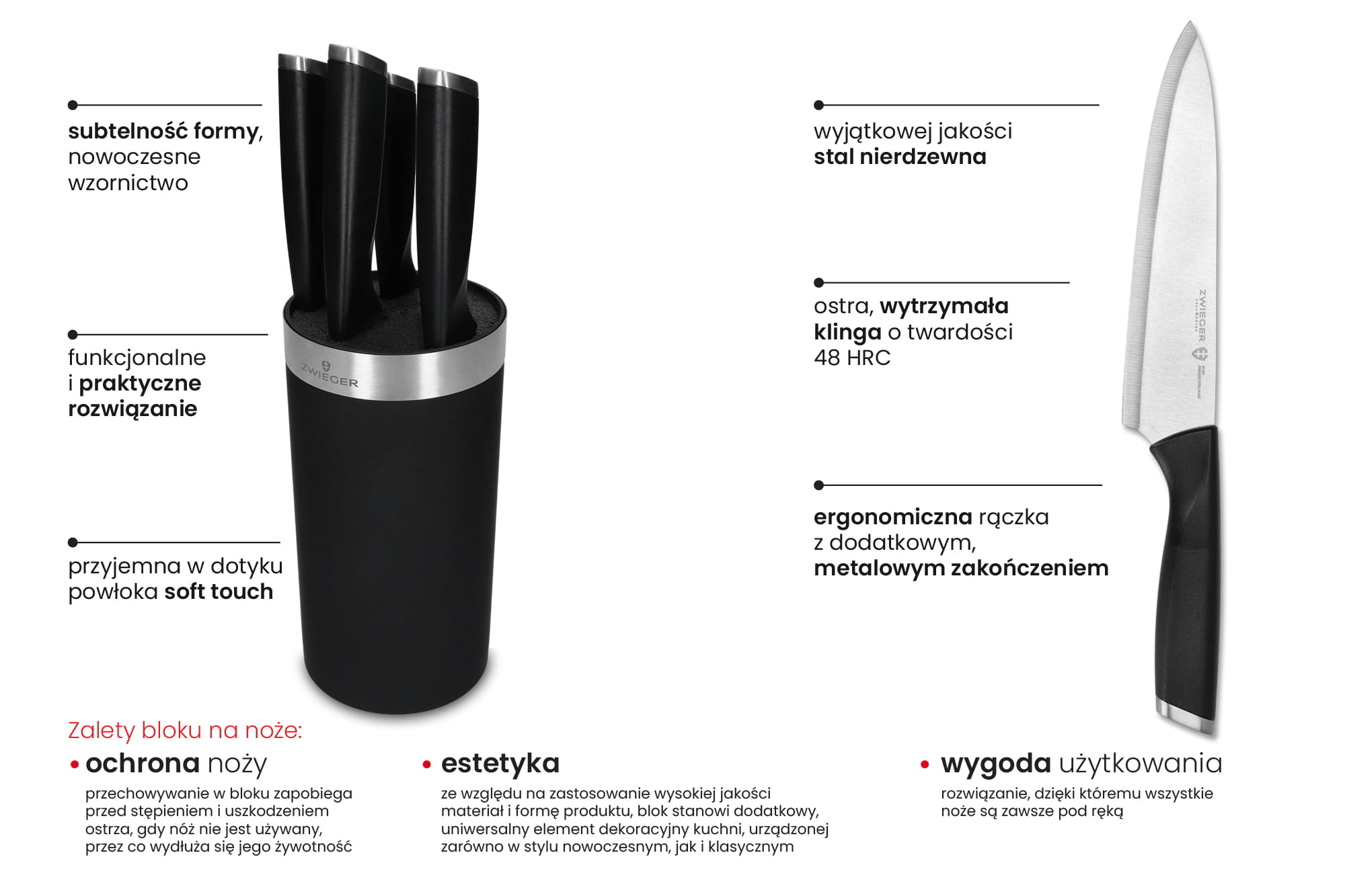 - WYGODA UŻYTKOWANIA – rozwiązanie, dzięki któremu wszystkie noże są zawsze pod ręką
