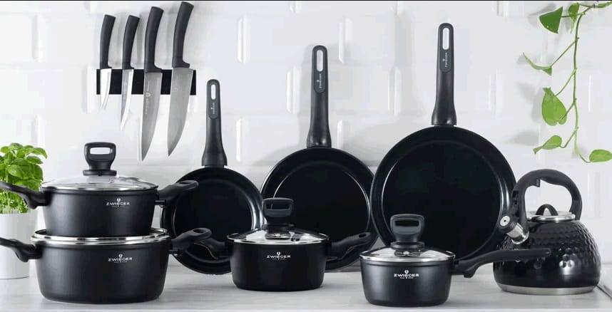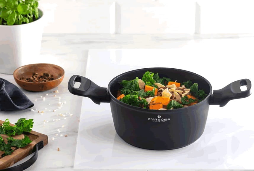 Zastosowany pełny dysk indukcyjny zapewnia do 40% lepsze wykorzystanie energii kuchenki dzięki pełnemu przewodzeniu magnetycznemu, jednocześnie idealnie współpracuje z innymi typami kuchenek grzewczych. Zewnętrzną część naczyń pokrywa czarny, silikonowy lakier żaroodporny, dzięki któremu zachowają one swój estetyczny wygląd przez długi czas. Garnki posiadają odpowiednio dopasowane i wyprofilowane pokrywy z bezpiecznego szkła hartowanego oraz bardzo wygodne, nienagrzewające się uchwyty z tworzywa PP z przyjemną